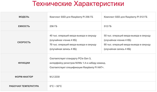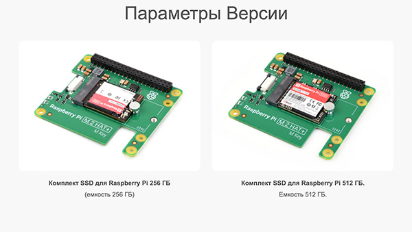 В комплект входит SSD-накопитель для Raspberry Pi (256 ГБ NVMe или 512 ГБ NVMe).