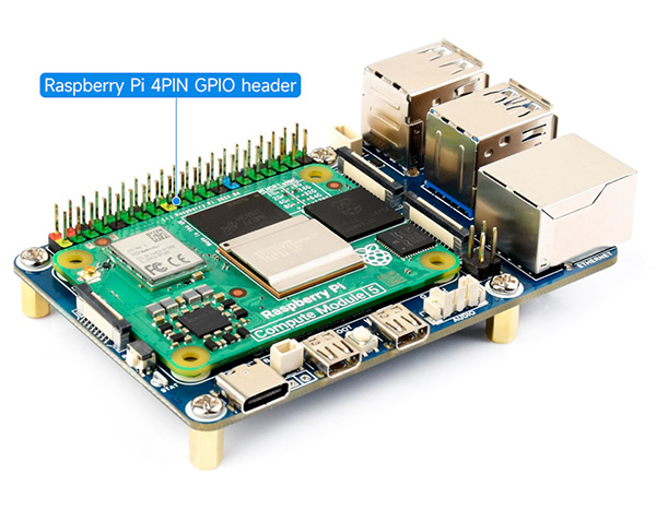 Встроенный 40-контактный разъем GPIO и стандартный разъем CM5