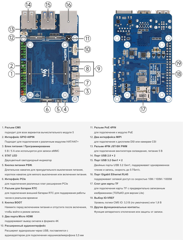| разъем CM5: | Подходит для всех вариантов вычислительного модуля 5 |