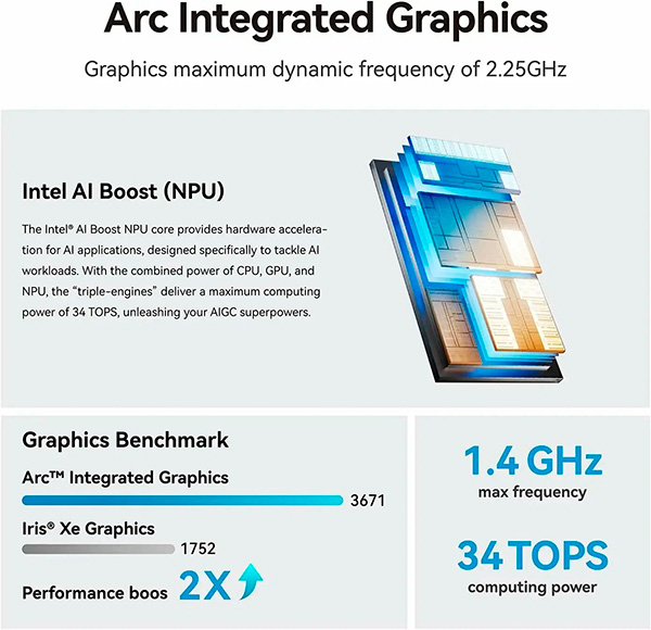 - Новая конфигурация для эпохи ИИ - процессор Intel® Core™ Ultra Series, более новый и быстрый процессор для ИИ.