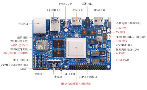 - Камера: 2x2-полосный интерфейс камеры MIPI CSI, совместимый с камерой Raspberry Pi