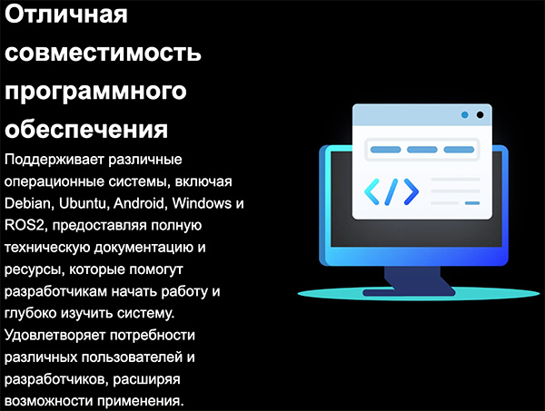 | Поддерживаемые операционные системы: | Debian, Ubuntu, Android, Windows, ROS2 (Robot Operating System 2) |