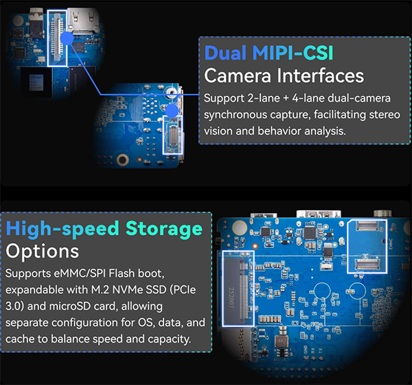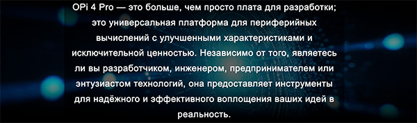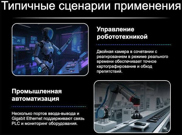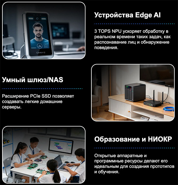 Благодаря восьмиядерному процессору, выделенному нейросетевому процессору, богатому набору интерфейсов ввода-вывода и обширным возможностям расширения, интегрированным на компактной плате, OPi 4 Pro с лёгкостью справляется с ресурсоёмкими приложениями. Будь то робототехника, интеллектуальные шлюзы, промышленные системы управления или сложные задачи логического вывода с использованием искусственного интеллекта, он позволяет вам быстро и эффективно реализовывать свои проекты.